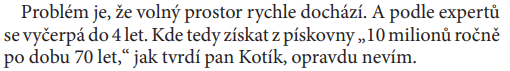 Naprostý nesmysl, když někdo tvrdí, že už je prostor na ukládání jen 4 roky. Možná by tomu tak bylo tempem, které nastolili jednatelé Novotný a Hasoň. Když jsme byli ve vedení městské části, tak jsme zdůrazňovali, že třeba myslet do budoucna a paralelně s ukládkou těžit písek. I bez odborného vzdělání musí každý pochopit, že „díru“ je potřeba i vytvářet, nejen zasypávat. Proto pan jednatel Smrček už kdysi předložil vizi pračky písku. Dva roky se v tom nic nedělo. I proto byly slevy navázány na odběr písku. Taková jediná sleva dává smysl a vrací se k ní i současný jednatel pan Mrňous.